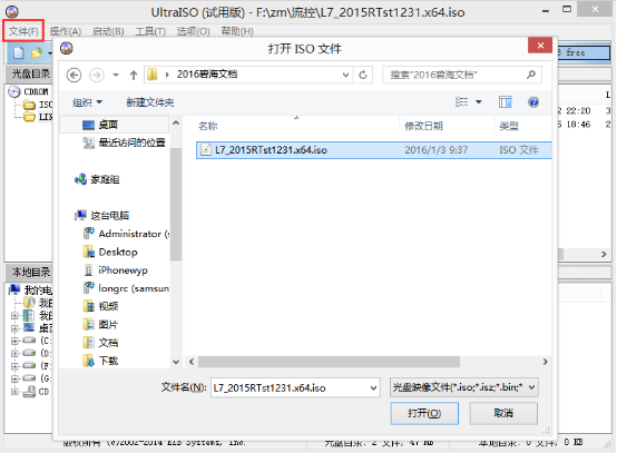 1.下(xià)載安裝軟碟通(tōng)刻錄軟件(jiàn),打開(kāi)軟碟通(tōng)-文(wén)件(jiàn)-打開(kāi)-選擇€下(xià)載好(hǎo)的(de)碧海(hǎi)雲盒ISO安裝包。