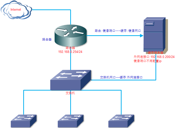 碧海(hǎi)緩存通(tōng)過鏡像端口獲取內(nèi)網中的(de)數(shù)據請(qǐng)求,所以,碧海(hǎi)緩存需要(yào)配合支持鏡像端γ口的(de)路(lù)由或者交換設備使用(yòng)