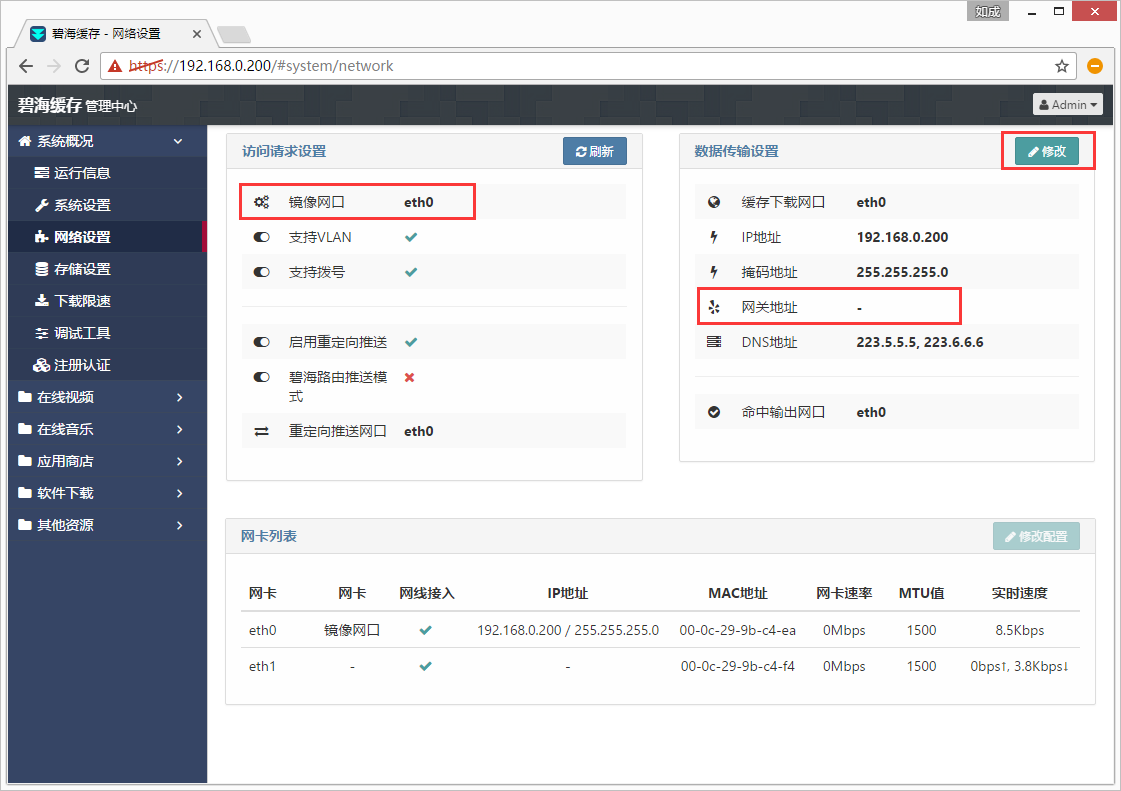 設置服務器(qì)網關地(dì)址和(hé)DNS服務器(qì),保證緩存服務器(qì)可(kě)以上(shàng)網