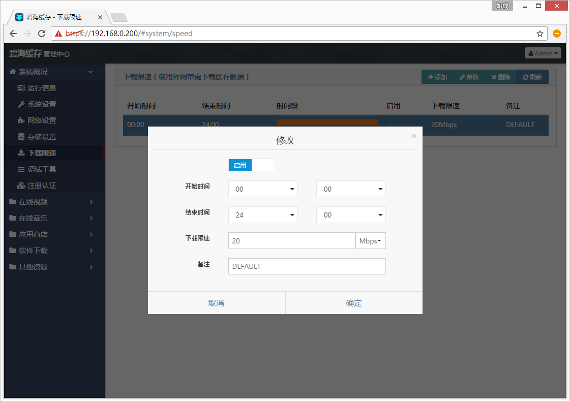 添加緩存服務器(qì)數(shù)據下(xià)載口的(de)限速,可(kě)以選擇時(shí)間(jiān)段