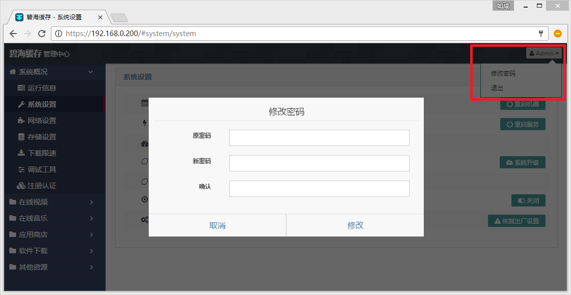 如(rú)果ip填寫錯(cuò)誤,使用(yòng)admin123密碼登錄控制(zhì)台,Reset Network重設網絡參數(shù)