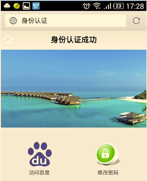 手機(jī)輸入用(yòng)戶名密碼後出現(xiàn)此界面就(jiù)為(wèi)認證通(tōng)過,可(kě)以正常上(shàng)網,當客戶機(jī)關機(jī)後,WIεFI帳号自(zì)動失效,手機(jī)連接的(de)WIFI也(yě)無法訪問(wèn)網絡。