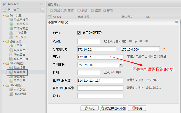 3.打開(kāi)-DHCP服務-服務列表-添加-設置DHCP分(fēn)配給WIFI連接的(de)IP地(dì)址範圍