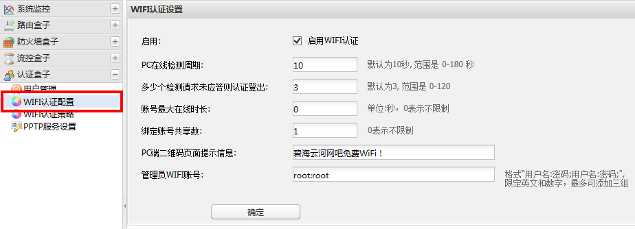 啓用(yòng)WIFI認證-打勾開(kāi)啓WIFI認證。