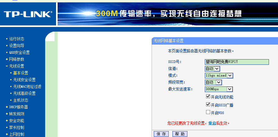 2)設置無線WIFI的(de)SSID名稱,打開(kāi)無線路(lù)由器(qì)基本設置—SSID号:輸入WIFI名稱,一(yī)∞般設置本網吧(ba)名稱,比如(rú):XX網吧(ba)WIFI!以方便顧客識别!